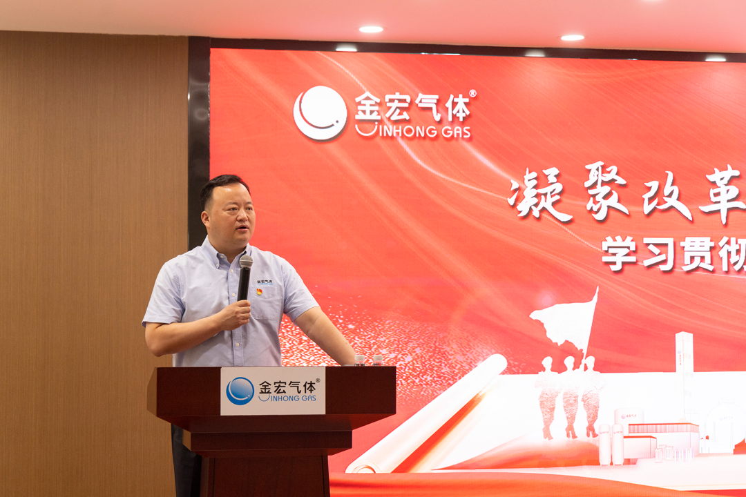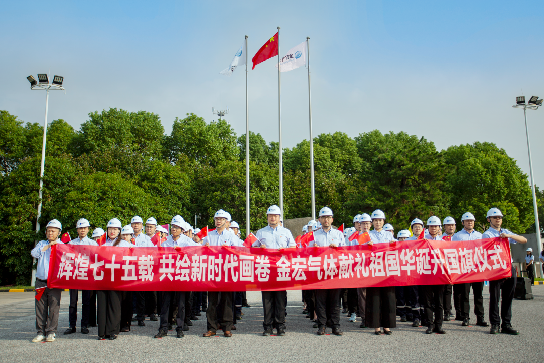 同升一面旗 随着嘹亮的口令响起,升国旗仪式正式开始。伴随着雄壮激昂的《义勇军进行曲》,全体人员整齐列队,注视着五星红旗冉冉升空,在奋进的旋律中感受着启航新征程的澎湃动力。 多年间风雨无阻,升国旗活动已成为金宏人每年最隆重的仪式,这不仅是对国家荣誉的崇高致敬,也是对国家繁荣昌盛的美好祝愿,更是金宏气体与国家同频共振、共同发展的坚定信念。 同唱一首歌 “五星红旗迎风飘扬,胜利歌声多么响亮,歌唱我们亲爱的祖国,从今走向繁荣富强......”,全体人员齐声高唱《歌唱祖国》,所有的声音汇聚成一股奋发前进的力量,诠释着金宏人“融入经济血脉 彰显高尚气质”的精神内核,激励着金宏人将浓浓爱国情、殷殷报国志化作实业报国、实干兴邦的不竭动力。 同上一堂课 升旗仪式完毕后,金宏气体党总支书记、董事长兼总经理金向华围绕“凝聚改革共识 激发奋进力量”主题思想,发表了重要讲话。要求全体金宏人心系全局、躬身入局,拉起质量“高线”,提升服务“准线”,让标准化领航、精细化赋能。在新形势下,要以时不我待的紧迫感和舍我其谁的责任感,敢担当、善作为,用智慧、勇气、实干开创金宏高质量发展新篇章。 同走奋斗路 峥嵘岁月,不忘初心,用坚定信念为国旗增色;盛世华诞,锤炼本领,用创新创造向祖国献礼。金宏人将继续秉承“安全 诚信 敬业 创新”的核心价值观,秉持“为客户创造纯金价值”的经营理念,积极履行社会责任,推动可持续发展,以更加坚实的步伐向着“打造行业第一民族品牌”的企业愿景迈进!