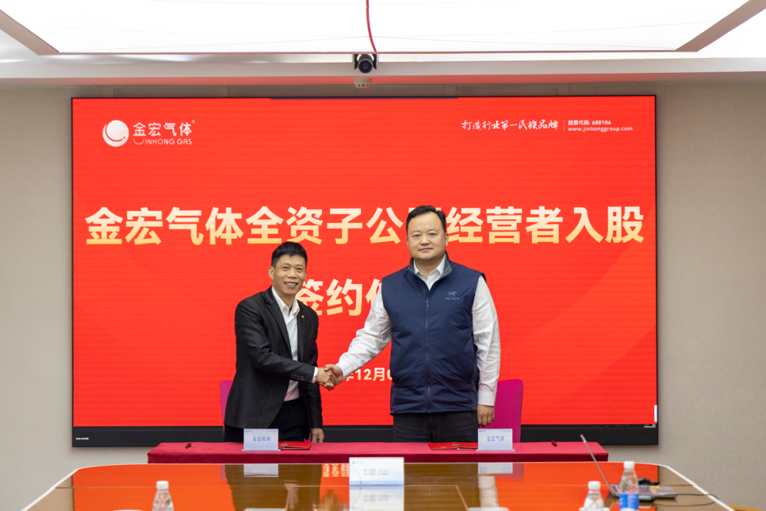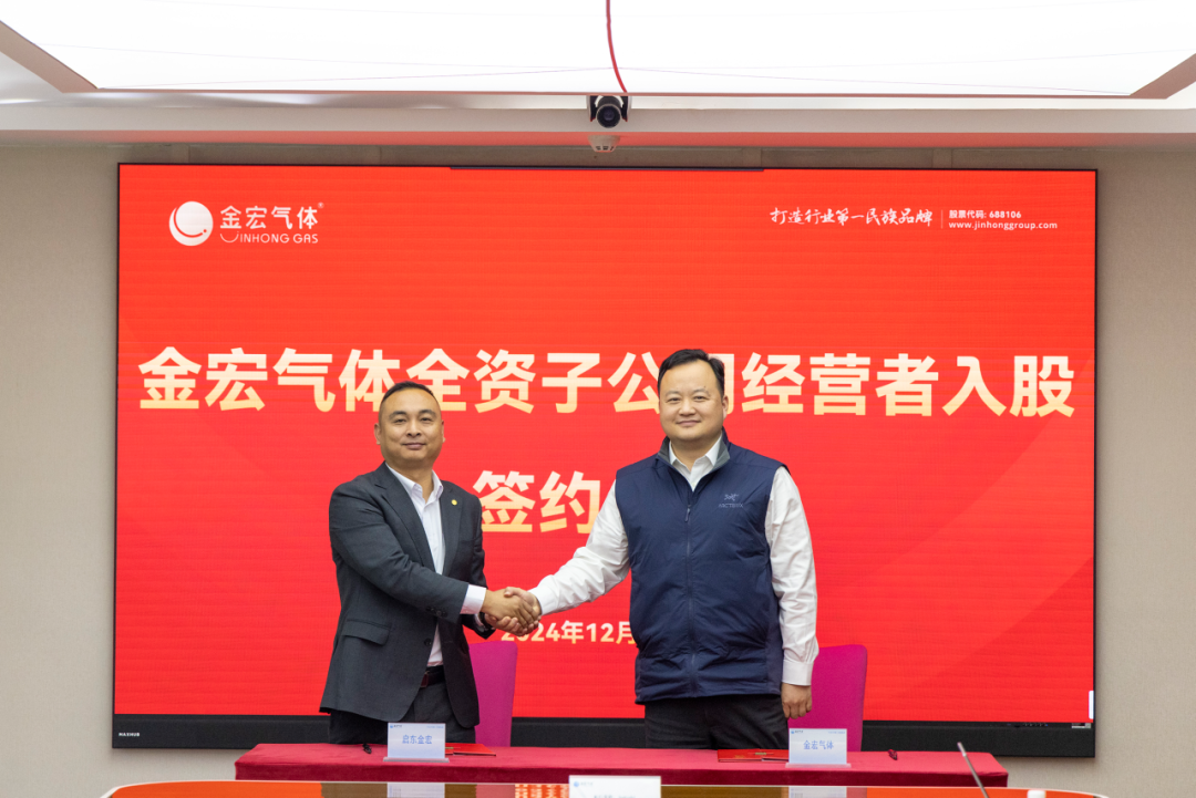 2024 年 12 月 4 日下午,金宏气体与全资子公司苏州金宏检验检测技术有限公司、金宏气体(启东)有限公司、太仓金宏电子材料有限公司、青岛金宏润气体有限公司举行经营者入股合作签约仪式。金宏气体董事长兼总经理金向华携集团部分高管出席并见证签约仪式。 该项措施为金宏气体经营管理上的重大改革创新,旨在为各子公司高质量可持续发展提供有力支撑,未来将逐步推广到其他子公司。